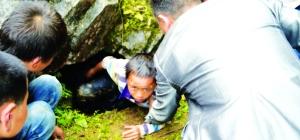 3小学生山洞探险被困10米洞底 40分钟后被救出