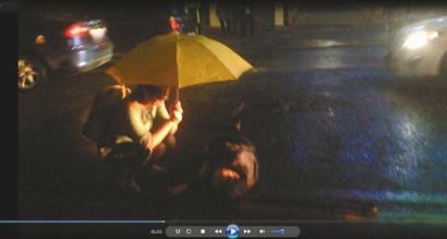 四川中学女孩大雨中为车祸伤者撑“爱心伞”(图)