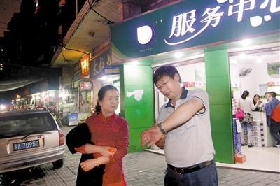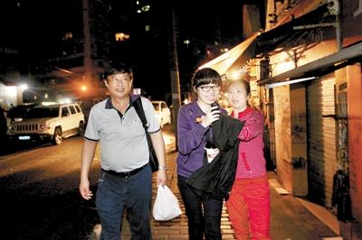 赵渝生夫妇每天晚上10点左右在家附近接到小诗雨十分开心。 本版图/重庆晨报记者 许恢毅 摄