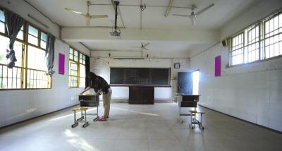 老师正在细心准备考场。