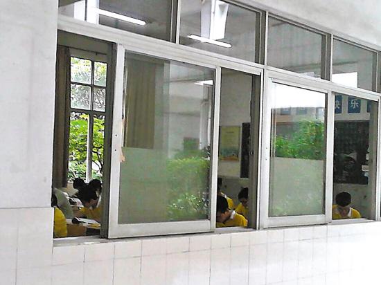 该校高一年级课室里有不少准高二学生在上课