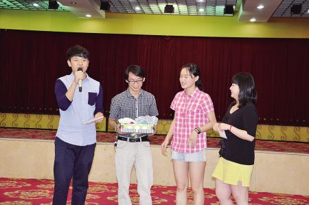 湖南师大附中一文科毕业班则通过别出心裁的小游戏为毕业师生聚会添彩。组织者将老师与同学分为不同小组,由老师担任组长,共同参加“画画猜谜”“可乐赛跑”等项目。游戏中同学们为老师画了有趣的画像,还模仿“感动中国人物”颁奖典礼,为每位老师朗诵个性化的颁奖词,并送上各具特色的小礼物。