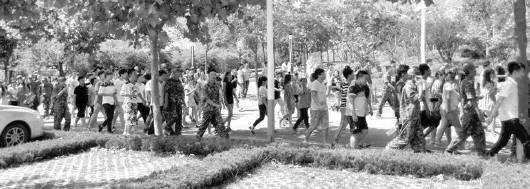 行走在学校里的抗议学生。(资料片)