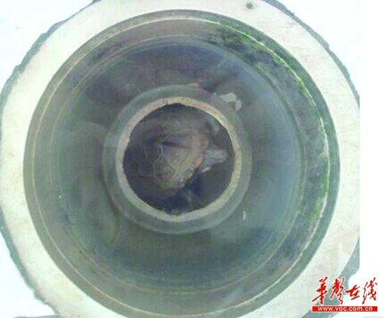 @隔壁孙叔叔:中午在洗漱池洗漱发现水池的水下不去,然后仔细一看居然里面有一只乌龟!@Hi都市报