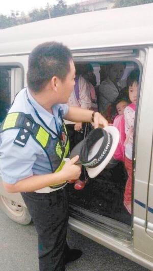 22日下午4时30分,郭分粮带领中队民警在108国道斜口段对过往车辆进行疏导时,一辆车牌号为陕A3EK6*的微型面包车,在行驶至距离执勤民警十余米的地方企图强行掉头,发现这一可疑情况后,民警立即示意该车靠边停车并上前查看。民警透过车窗玻璃,发现面包车内竟拉了十多名幼儿园的孩子,而此车核定载客人数为7人。