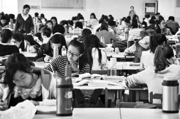 在聊城大学图书馆,众多考生正在为2015考研备考、奋战。 本报记者 李军 摄