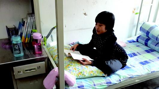 活动不便,宋可心课余时间多是坐在宿舍的床上看书。