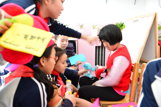 当日上午,四中同学首先观看了介绍新运儿童康复中心的短片,了解了智力发育迟缓儿童的特点、他们所需要的特殊教育及与他们沟通交往的知识等,了解了对待这些孩子需要包容和理解,激发出学生的爱心和责任心。之后,双方小朋友举行了联欢。由四中的同学为小朋友们表演歌曲、舞蹈、乐器演奏、魔术等节目,小朋友们观看得非常认真,有的还模仿哥哥姐姐的动作、跟随着音乐翩翩起舞。