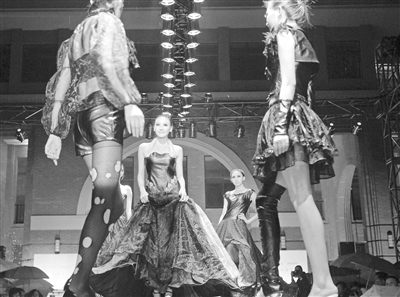 28日晚,湖北美术学院艺术设计学院举行2009届毕业生作品展演,服装设计专业的76名同学展示了300多套作品,其中相当数量的毕业作品,具有较强的时尚特色和市场价值,体现了服装艺术性与实用性的完美结合。
