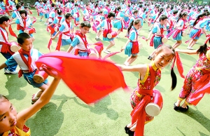 民俗教育是金台小学的校本课程内容,撕纸、剪纸、捏面人、画风筝等都被列进了学校课表。这学期,学校将腰鼓也纳入了校本课程。民俗协会的腰鼓老师进校授课,学校音乐老师自编了一套腰鼓操,少年先锋队队歌和一些民族歌曲都被配上腰鼓动作编成了腰鼓操。
