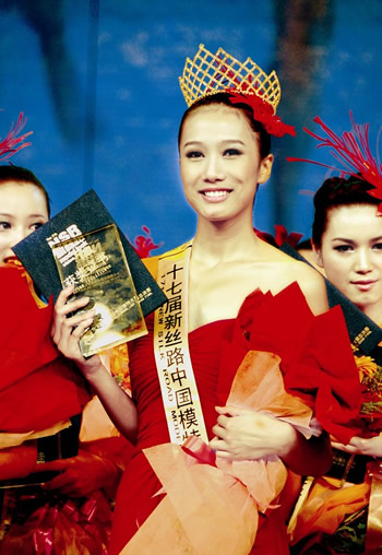 荆楚网消息 (楚天都市报)(通讯员郎丽 马绪亮)前晚在海南三亚举行的第17届新丝路中国模特大赛总决赛上,武汉科技学院服装学院08级学生钟阳阳脱颖而出,一举夺得总决赛冠军和三亚旅游形象大使、最佳T台表现奖三项大奖。近年来,该校凭借服装表演方面的专业优势,频频在各项模特大赛中折桂。(图片据新华社)