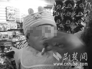 荆楚网消息 (楚天都市报) (记者周鹏 实习生陈伟 朱娟娟)昨日,网友“凌云”在网上发帖《武汉年仅7个月的小烟民》,该帖引来众多网友的关注,网友们纷纷斥责:“孩子不懂事,大人为何如此无知!”“凌云”在帖子里面说:“日前,笔者在汉口汉正街一个批发市场,听到这里的经营户谈到,他们这里有一个才7个月的小烟民,抽起烟来有鼻子有眼。看到这些经营者逗孩子抽烟的样式,我感到一丝悲哀。真想大吼一声:你们这不是在逗孩子玩,分明是在害人呀!”