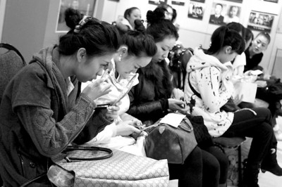 上午八点,东华大学服装学院的候考室内热闹非凡,浓妆艳抹、揽镜自照……来自全国各地的140多名美女们正在紧锣密鼓地做着考试前的最后准备。