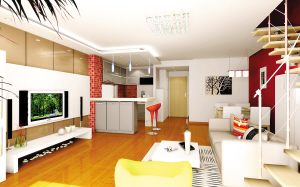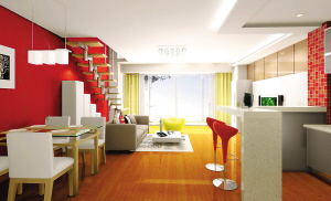 简单舒适而又不缺乏时尚元素的布局越来越受到人们的青睐。本案用简洁、现代的设计理念来传达对生活的态度。在本案中运用了直线的装饰造型,并结合现代的多种元素。强烈的色彩对比,使整个房屋挑高,为此在结构上做了较大的改动,把房屋用钢架结构分割为两层,有了独立的卧室空间,这样使空间得到更好的应用。金属质感的楼梯是典型的简约现代风格元素。客厅背景墙的玻璃材质,给整个空间明快的感觉,直线的吊顶使空间有了明显的划分,开放式的厨房更加体现了主人对生活的简单,使主人一天的疲惫在回到家的那一刻起得到放松。