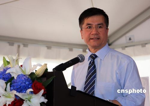 7月17日,中国2010年上海世博会美国馆举行奠基仪式,美国商务部部长骆家辉出席并在致辞中表示,美国国家馆是上海世博会最大的展馆之一,同样也希望它成为世博会最棒的展馆。美国馆将展示美国人民的生活与文化,相信一定能让全球的的参观者流连忘返。中新社发 潘索菲 摄