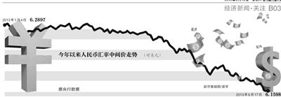 数据显示,从4月1日至6月17日的48个交易日中,人民币对美元中间价22次创出了2005年汇改以来新高。今年以来,人民币对美元中间价已累计升值1262个基点,累计升值幅度逾2%,而去年全年人民币对美元中间价累计升值仅154个基点。