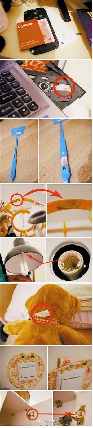 最近,网友整理出15处藏私房钱的最佳地,一度成为各大论坛转载的热点。这15个藏钱处包括:电脑光驱、手机电池背后、衣架底部、灯泡接口处、烟盒里、衣橱合页内、苍蝇拍的空心手柄、开关装饰物背后、毛绒玩具的围巾里……令人大开眼界。很多男性网友刚看到帖子时如获至宝,表示“回家就藏起来”。不少女网友看到帖子后掩饰不住内心狂喜,“回家就按图索骥地搜查”。