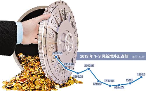 9月外汇占款增加1264亿元人民币 连续两月增加