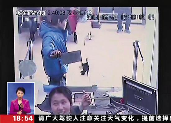 男子持刀抢银行 玻璃墙后女营业员淡定地笑