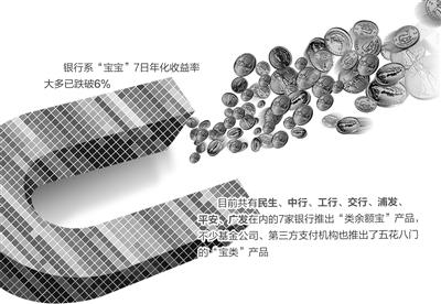 2月28日,民生银行直销银行的“如意宝”面世,壮大了银行系“宝宝军团”的力量。截至目前,共有民生、中行、工行、交行、浦发、平安、广发在内的7家银行推出“类余额宝”产品。除了银行系“宝宝军团”,各个基金公司、第三方支付机构也推出了五花八门的“宝类”产品。