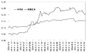 在市场交易价格方面,尽管人民币兑美元即期汇价在6月中旬及6月末分别出现过短时上涨行情,但每到整数关口即面临阻力,总体也未突破近阶段区间震荡格局。2日,由于前一天未能有效突破6.20关口,人民币即期汇价掉头回调,盘中一度下跌120基点,尾盘收在6.2106,比前日收盘跌90基点,由此结束此前连续四个交易日的升值行情。