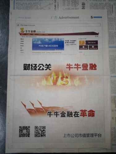 牛牛金融挑战财经公关 多家媒体刊登整版广告
