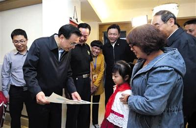 23日,福州市红星苑小区拆迁户黄金权邀请到访的总理做客新家。图/中国政府网