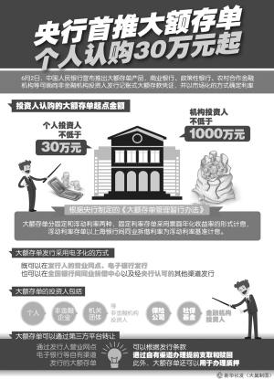昨日央行发布的《大额存单管理暂行办法》规定,银行业存款类金融机构将面向普通投资者、机构投资者推出大额存单。该办法自发布之日起实施。
