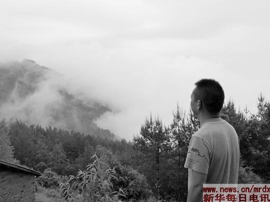 5月的一个清晨,刘泽中站在道观的平台上眺望远方的青山,他的核桃林就在那片云雾之中。 李坤晟 摄