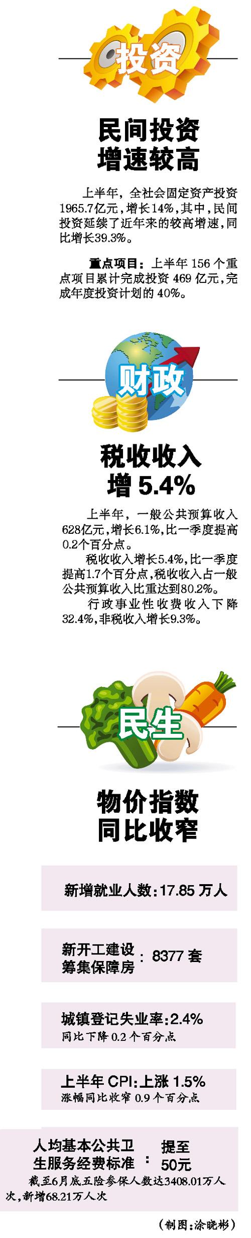 一般公共预算收入增长6.1%,比一季度提高0.2个百分点。