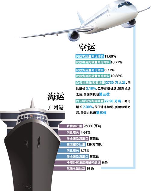今年下半年,广州将制定出台建设国际航运中心、物流中心和发展航空产业三年行动计划。