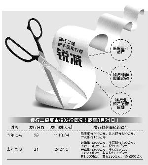 统计数据显示,截至日前,今年债券市场共发行了29只商业银行二级资本债,发行金额合计1113.64亿元,与去年同期的21只、2427.5亿元相比,发行只数有所上升,但发行总额却缩水逾五成。