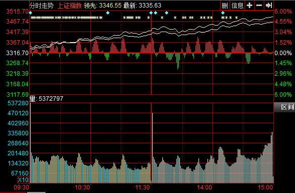 收盘:沪指涨4.31%收复3400点 创业板涨逾6%