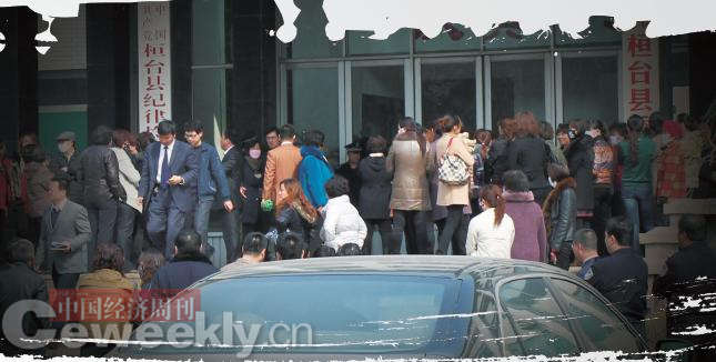 就在记者离开桓台的3月27日上午,看见很多债权人在县委门口集聚,旁边有警察在维持秩序。