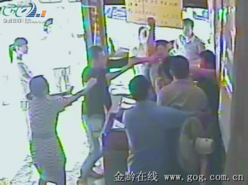 昨日,贵阳市万江路一家彩票店的老板娘杨女士对前来购买彩票的三名男子称“你付了钱,再选彩票”,三名男子不同意。双方先是发生口角之争,随后,喝了酒的三名男子对杨女士拳脚相向,其中一名男子还拎着板凳想朝老板娘身上打去,被及时制止,整个殴打过程长达3分钟。