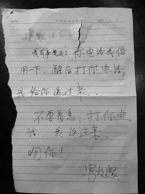 第二天清晨醒来,小朱发现躺在自家床上,衣衫不整,手机和现金不翼而飞,“翁经理”留下一张字条,称借手机一用。