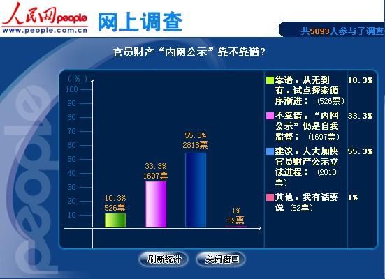 据此问题,1月28日,人民网推出“官员财产‘内网公示’靠不靠谱?”的网络调查。