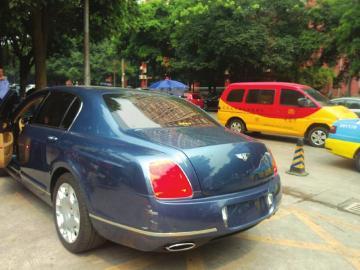 昨日,在宜宾南岸政务中心门口,一辆还未挂牌照的宝蓝色宾利车被一辆电三轮刮花,三轮车司机慌忙逃跑,逃跑时又将一辆面包车刮花。