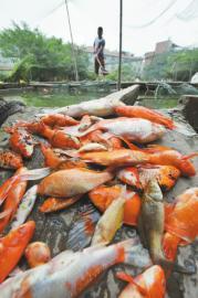 昨日下午,腐烂的臭味已越发浓重,但李业松夫妇仍守候在池塘边,他们已经一天没有吃饭了,李业松说,养殖观赏鱼从父亲就开始了,到他这已有20多年,如今,家里共养了狮头、鹅头红、珍珠、锦鲤等10多个品种的观赏鱼,全家人都靠着这份家业维持生计。“和普通活鱼不同,观赏鱼更娇贵,”李业松说,每周除了星期天,他都是早上4点半就起床检查鱼塘,每天喂4次,这么几年,他不敢出一次远门。为了让鱼儿不掉鳞甲,他花了几万元给每个池塘安装了氧气设备,还花了几千元买来专用药,凌晨一两点,他要检查了氧气没有问题才敢睡觉,而一碰到打雷下雨,他还得马上爬起来给池塘放水,名贵些的鱼种要三四年才能长成熟,“毁于一旦的除了这份家业,还有我们的生活。”李业松说。记者 李天宇 张磊