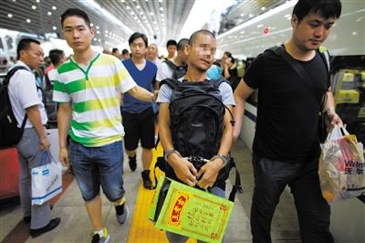 昨日下午,3名犯罪嫌疑人被从广州押解到京。新京报记者 周岗峰 摄