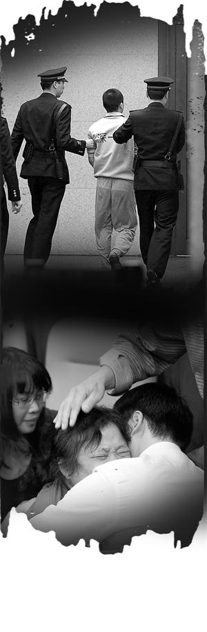 ▲李才坤被押出法庭。资料图 ▼亲属悲伤不已。 深圳晚报记者 余海洪摄