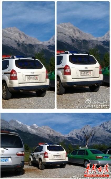 湖南警车停在丽江景区遭质疑 回应称外出办案