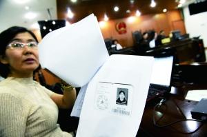 原告律师出示原告的残疾人证复印件。晨报记者 郝笑天/摄