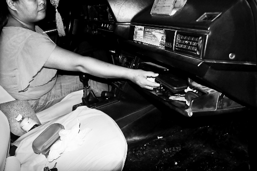 趁着歹徒在杂物箱里翻找钱物时,丁女士推门逃脱 河南商报见习记者 唐韬/摄