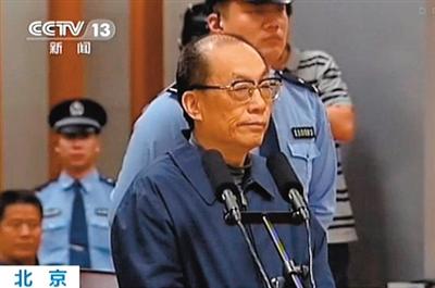 6月9日,刘志军涉嫌受贿、滥用职权在北京市二中院受审。因其身体不适、不宜坐着,在向法庭说明情况,得到法庭许可后,庭审三个多小时,刘志军身着便装全程站在被告人席位上。视频截图