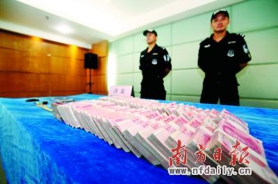 警方公布追回的现金。三公宣 摄