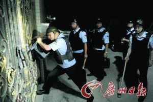 10月8日晚上7时30分,记者跟随办案人员从广州出发,去哪里,干什么,连带队的人都不知道,“只是让跟着车走,一路根据指令调整行程”。晚上10时30分,大批警力开始集结。晚上11时,所有民警手机全部上缴,并分成若干行动小组,公安和武警相互搭配,每个小组领到一个文件袋,里面有此次行动的任务和目标,每个小组之间彼此并不知情。