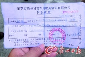 顾先生立即找东莞市通圣机动车驾驶员培训学校讨说法,没想到被告知驾校并未收到有关他报名学车的相关资料。顾先生出示那张收款收据,驾校工作人员告诉他,他的这张收款收据不是该驾校出具的。