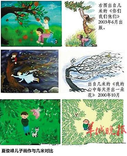 沈阳小贩夏俊峰已经被执行死刑,但围绕这个家庭的话题似乎还没有结束。10月9日下午,台湾知名漫画家几米品牌官方微博的一则针对“天才小画家”的维权声明引发网络关注,网友纷纷质疑夏俊峰之子强强的画作涉嫌抄袭几米作品。