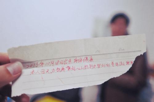 孩子的随身物品似乎能给出答案。孩子被发现时,包裹她的花色被褥里塞着一张纸条,上面用红色圆珠笔写道:“2013年10月18日出生,身体健康,本人因无力抚养,望好心人拾到女婴好好善待孩子,谢谢。”